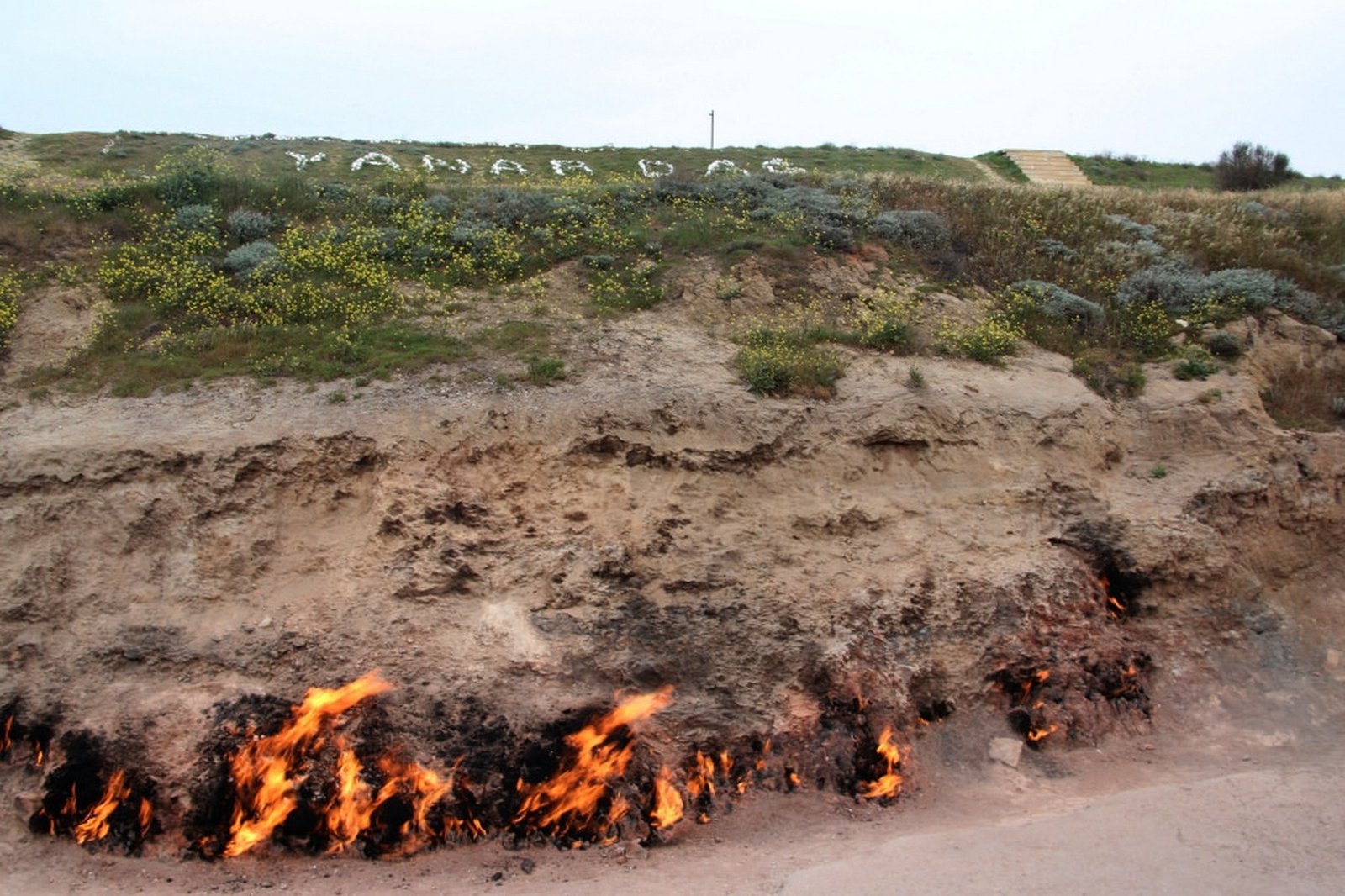 Trip to “Fire Mountain” – “Yanardag” – a mountain on Absheron peninsula, 25 km from north of Baku. Literally, word “Yanardag” means “Blazing Mountain.” Blazing bodies of flame dance on stones and floor. Yanar dag is a natural gas fire which blazes continuously on a hillside on the Absheron Peninsula on the Caspian Sea near Baku, the capital of Azerbaijan, which itself is known as the “land of fire.”