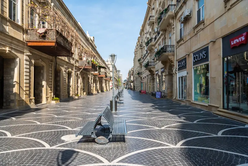 After walking around the Old City guests will experience the happening street of Nizami Street known for shopping. The street history could be traced back to Baku & town-planning project of 1864. The street runs through the city & downtown from west to east. It begins from Abdulla Shaig Street, in mountainous part of the city and ends at railroad bed on Sabit Orujov Street, Fountains Square is a public square in downtown Baku, capital of Azerbaijan. The square was previously called Parapet and is often referenced to by the same name now. The name of the fountains square derives from the presence of dozens of fountains throughout the square first constructed during Soviet rule of Azerbaijan. The square is a public gathering place, especially after business hours and during the weekend.